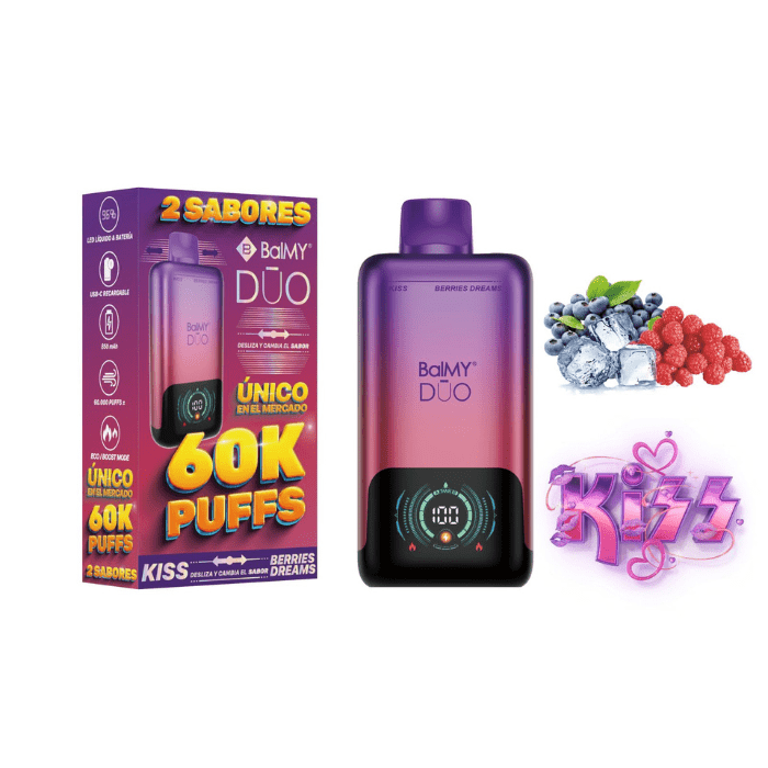 Vaper desechable BalMY DUO 60000 puffs ZERO nicotina – KISS y Berries Dreams