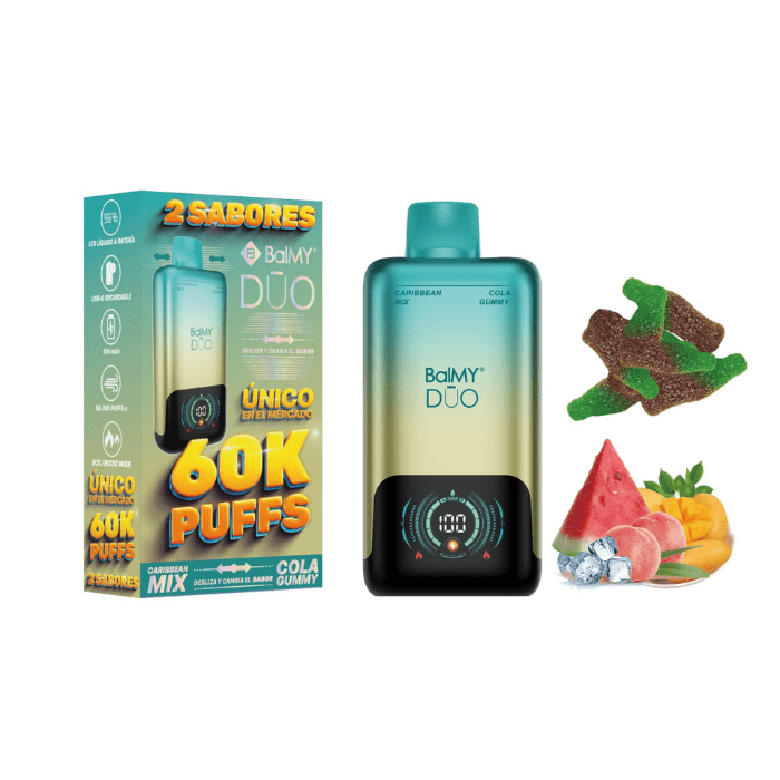 Vaper desechable BalMY DUO 60000 puffs ZERO nicotina – Caribbean Mix y Cola Gummy