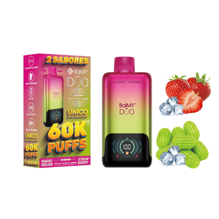 Vaper desechable BalMY DUO 60000 puffs ZERO nicotina – Magic Melon y Fresa
