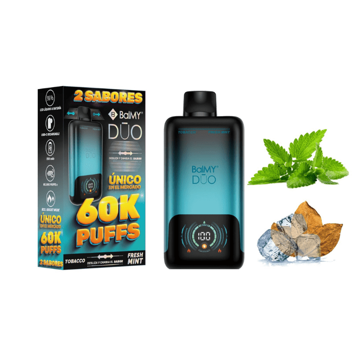 Vaper desechable BalMY DUO 60000 puffs ZERO nicotina – Tobacco y Fresh Mint